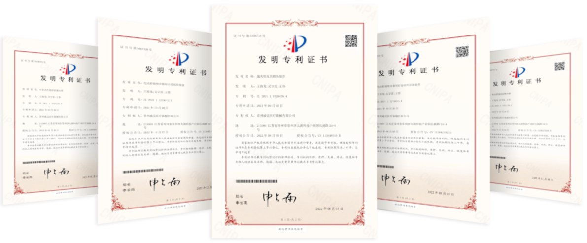 公司自成立以來陸續(xù)通過了 ISO13485、 歐盟 CE、巴西 ANVISA、美國FDA、印度、伊朗、韓國、沙特等國的質(zhì)量管理體系認(rèn)證,獲得國家專利100項,產(chǎn)品遠(yuǎn)銷30多個國家和地區(qū)。公司陸續(xù)被授予江蘇省高新技術(shù)企業(yè)、江蘇省科技型中小企業(yè)、江蘇省民營科技企業(yè)、江蘇省工業(yè)設(shè)計中心,常州市工程技術(shù)研發(fā)中心等稱號,榮獲國家創(chuàng)新基金,設(shè)立博士后工作站,并于2022年被評為國家級“專精特新”小巨人企業(yè)。