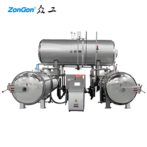 兩臺(tái)殺菌鍋同時(shí)使用一罐熱水工作,比雙層殺菌鍋產(chǎn)能提高一倍。